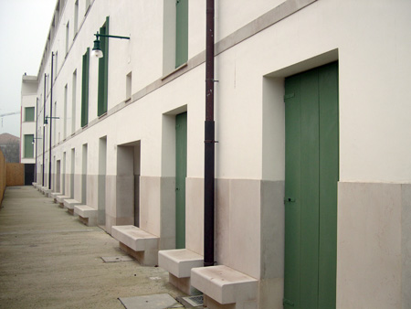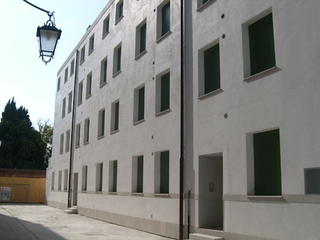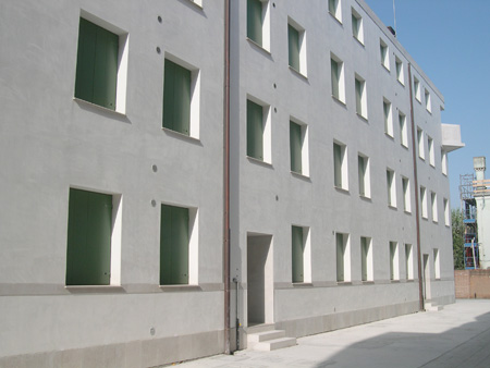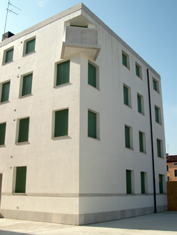 L’intervento edilizio prosegue il vasto e ambizioso progetto di riqualificazione architettonica e urbanistica dell’aera di Campo di Marte, alla Giudecca, iniziata nel 1983 quando l’allora Iacp, d’intesa con il Comune di Venezia, decise di abbattere un consistente numero di vecchi edifici abitati e di dar vita a un nuovo complesso edilizio, ordinato e organico. Per ottenere un risultato degno della singolarità e unicità della città di Venezia e del particolare sito – a ridosso della chiesa delle Zitelle e del bacino di San Marco e in un’isola destinata a profondi interventi strutturali data la presenza di varie aree industriali dismesse – Iacp e Comune indissero un Concorso internazionale di progettazione su invito, interpellando una decina tra i più famosi architetti italiani e stranieri. Il Concorso per il Progetto Urbanistico fu vinto dall’architetto portoghese Alvaro Siza Viejra mentre la progettazione degli edifici fu affidata agli architetti Carlo Aymonino (Italia), Aldo Rossi (Italia), allo stesso Alvaro Siza Viejra e a Raphael Moneo (Spagna). Gli edifici di Aymonino e Rossi, per complessivi 51 alloggi, sono stati completati nel 2004. Il nuovo edificio con 32 alloggi progettato da Siza Viejra costituisce la prima parte, rettilinea, di un edificio a forma di “L” la cui seconda parte, attaccata alla prima ad angolo retto, è in fase di appalto e comprenderà 19 alloggi. Dalla parte opposta è prevista la costruzione di un altro edificio, su progetto dell’architetto spagnolo Raphael Moneo. In mezzo sarà ricavata una piazza che nella tipologia costruttiva e nell’arredo richiamerà i tradizionali “campielli” veneziani.