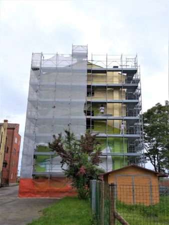 L’Ater di Venezia cerca di interpretare il proprio ruolo non solo di servizio alla residenza ma anche di valorizzazione dell’ambiente promuovendo la realizzazione di un grande murale su un edificio di quattordici alloggi in calle Boseghe, a Sacca Fisola, in fase di ristrutturazione.